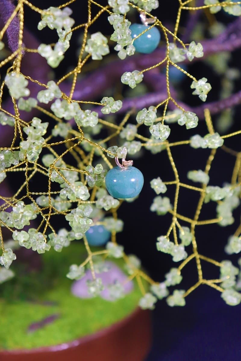 В этом дереве счастья из натуральных самоцветов соединяются противоположности — мимолетность цветения и вечность камня. Впервые эти удивительно красивые обереги появились на Востоке, где считалось, что они приносят удачу. Оттуда название таких сувениров — деревья счастья.